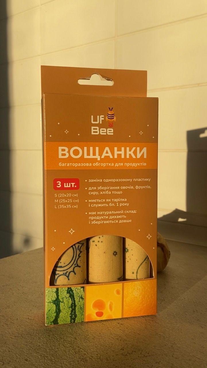 Для ефективного зберігання сиру у холодильнику без пластику використовуйте вощанки Uf Bee SuperPack. Вони створюють «дихаючий» бар'єр, який захищає від зайвої вологи та сторонніх запахів, зберігаючи свіжість продукту. Набір із трьох розмірів дозволяє ідеально підібрати обгортку для будь-якого шматка сиру, відрізка чи миски з залишками, забезпечуючи довгострокове використання та зменшуючи відходи.